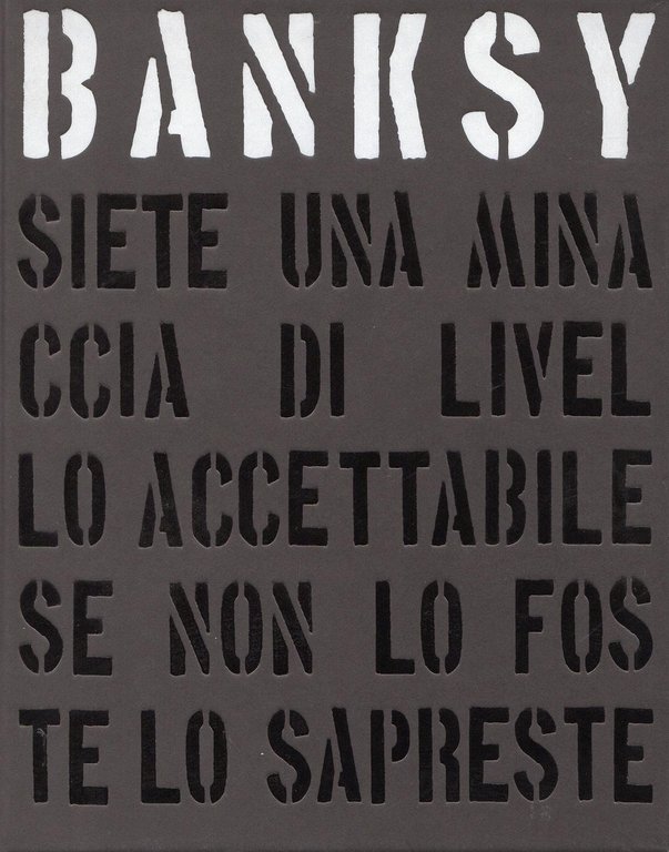 Testi di Patrick Potter. Fotografie a colori  . 8vo. pp. 248. . Ottimo (Fine). . Prima edizione italiana (First Italian Edition). . Complementare di "Wall and Piece" (ma non ufficiale e volutamente dissacrante), "Banksy - Siete una minaccia di livello accettabile", oltre a raccogliere tutte le opere emblematiche del primo periodo di Banksy, presenta i suoi maggiori lavori dal 2006 (anno i cui si conclude Wall & Piece) a oggi."Perchè tuttti gli altri libri su Banksy fanno c**** Sono. Una. Palla. Fidatevi. Non li ho letti. Ma basta un'occhiata per capirlo. Tutte quelle ricerche, frequentazioni con Banksy, leccate di c**** e quant'altro, e il risultato di un mucchio di c****. Perciò, se proprio dovete comprare un libro che lucra su Banksy, prendete questo e gli altri rubateli. Se invece appartenete a quella categoria di fanatici che non se ne vogliono far scappare uno, vi prenderanno per dei fanboy. Quindi è meglio che compriate solo questo." (L'editore).