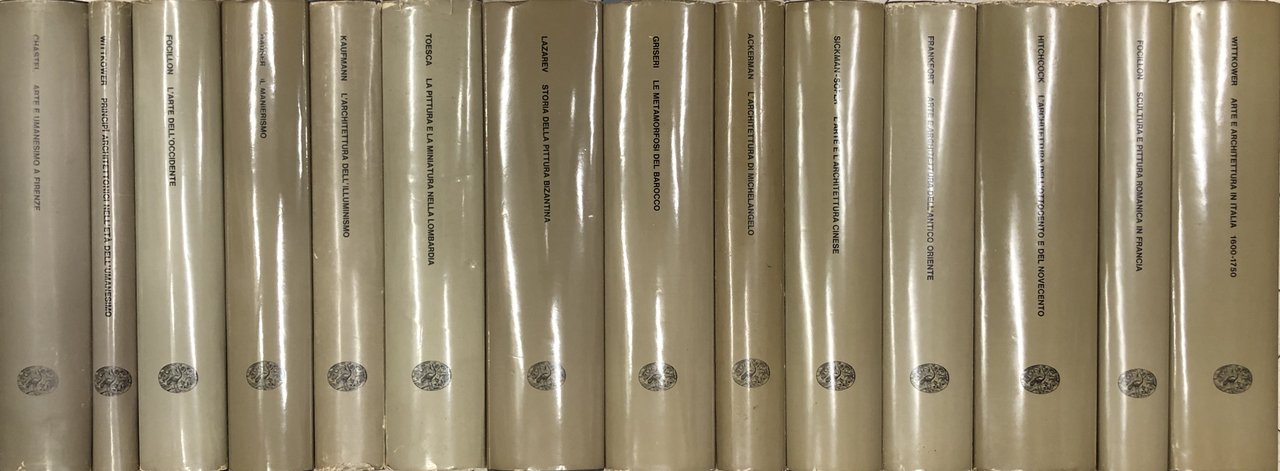 Biblioteca di storia dell'arte: N. 1 - Andre Chastel - Arte e umanesimo a Firenze al tempo di Lorenzo il Magnifico. Studi sul Rinascimento e sull'umanesimo platonico. N. 2 - Rudolf Wittkower - Principi architettonici nell'età dell'Umanesimo. N. 3 - Henri Focillon - L'Arte dell'Occidente. N. 4 - Arnold Hauser - Il Manierismo. La crisi del Rinascimento e l'origine dell'arte moderna. N. 5 - Emil Kaufmann - L'architettura dell'Illuminismo. N. 6 - Pietro Toesca - La pittura e la miniatura nella Lombardia. Dai più antichi monumenti alla metà del Quattrocento. N. 7 - Viktor Lazarev - Storia della pittura bizantina. N. 8 - Andreina Griseri - Le metamorfosi del Barocco. N. 9 - James S. Ackerman - L'architettura di Michelangelo. N. 10 - Laurence