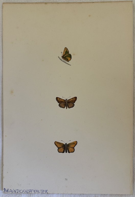 Litografia del 1870 circa colorata a mano che mostra una specie di farfalla. Nota manoscritta in lingua tedesca. In ottime condizioni. TECNICA: Litografia colorata a mano DIMENSIONI FOGLIO: cm 25x17,5 DIMENSIONI INCISIONE: cm 15,5x8 EPOCA: 1870 circaLithography of 1870 circa featuring a species of butterfly. <BR>Handwritten text in german language.<BR>In very good conditions. TECHNIQUE: lithography painted by hand PAGE SIZE: cm 25x17,5 PRINT'S SIZE: cm 15,5X8 PERIOD: 1870 circa