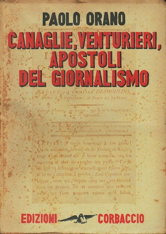 Canaglie, venturieri, apostoli del giornalismo. (Prima serie). | Libri antichi e moderni | Orano Paolo.