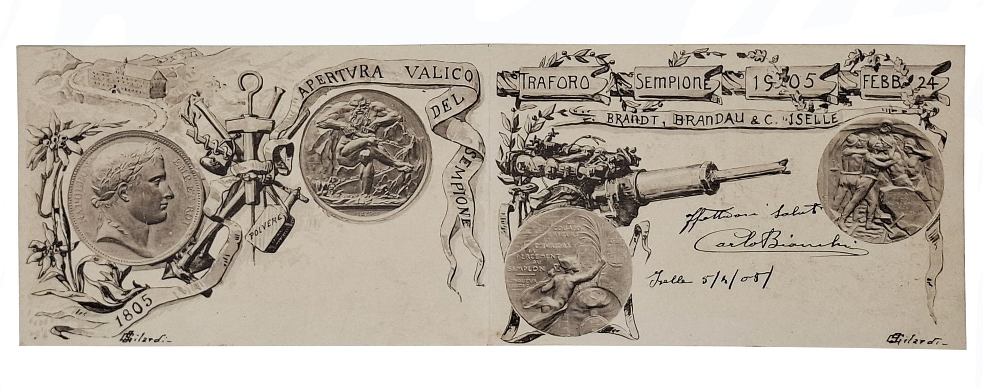 cartolina doppia commemorativa del centenario dell'apertura del valico del Sempione | Libri antichi e moderni | Gilardi (Illustratore)