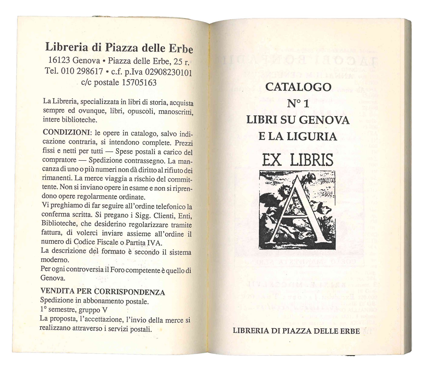 Catalogo n. 1. Libri su Genova e la Liguria. Ex libris.