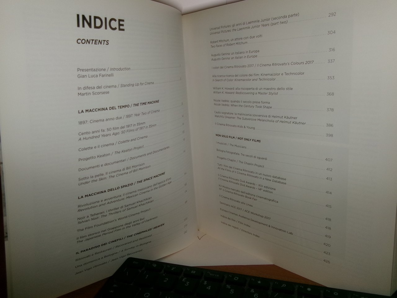 Cineteca di Bologna. Il Cinema Ritrovato Bologna 24 giugno 2 luglio 2017. XXXI edizione. Il Cinema Ritrovato 2017 è dedicato alla memoria di Luce Vigo. In-8° grande, cart. edit. 426 pp. con numerose illustrazioni la maggior parte in bianco e nero n.t. Come nuovo con testo italiano/inglese. Neg. mob. fot. N