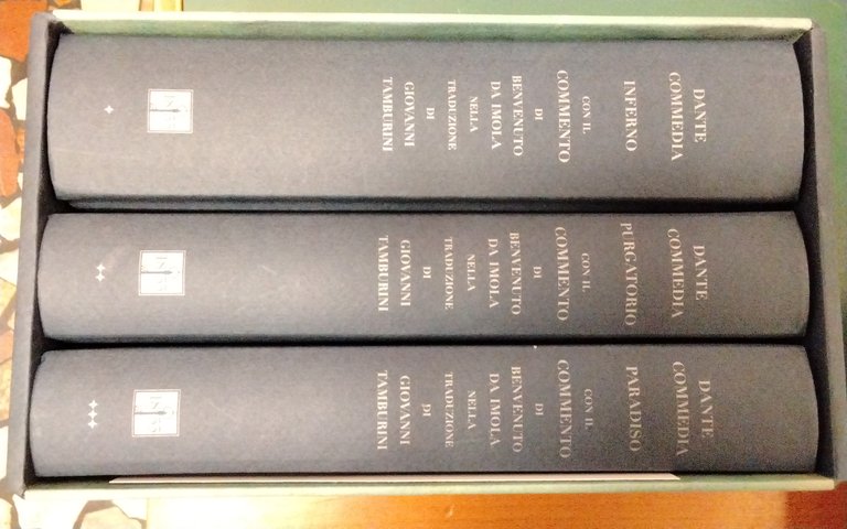 Divina commedia con il commento di Benvenuto da Imola, nella traduzione di Giovanni Tamburini. Ristampa anastatica dell'unica edizione pubblicata in tre volumi dalla Tipografia Galeati di Imola, negli anni 1855-1856.