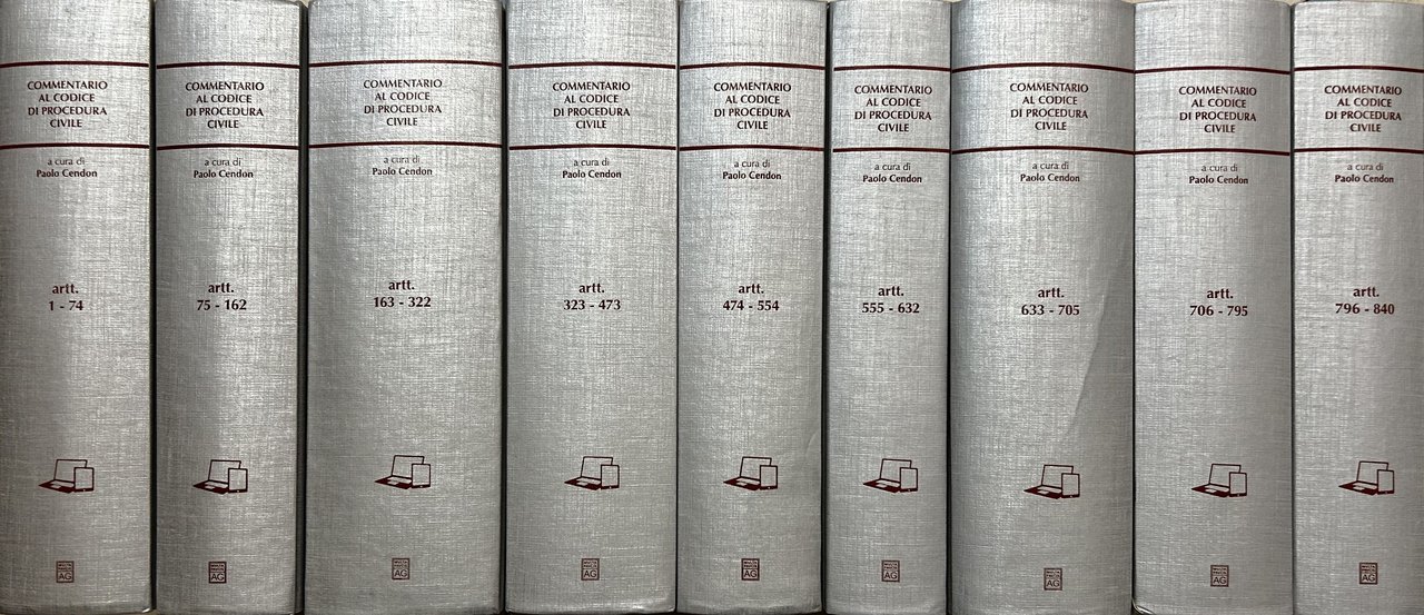 Commentario al codice di procedura civile. Vol. I - Artt. 1-74: Organi giudiziari - Pubblico Ministero. Vol. II - Artt. 75-162: Parti e difensori - Esercizio dell'azione - Poteri del giudice - Atti processuali. Vol. III - Artt. 163-322: Processo di cognizione - Procedimento davanti al tribunale - Giudice di pace. Vol. IV - Artt. 323-473: Impugnazioni - Controversie in materia di lavoro. Vol. V - Artt. 474-554: Processo di esecuzione: atto di precetto, espropriazione mobiliare, espropriazione presso terzi. Vol. VI - Artt. 555-632: Processo di esecuzione: espropriazione immobiliare, opposizioni. Vol. VII - Artt. 633-705: Procedimenti speciali: procedimenti sommari. Vol. VIII - Artt. 706-795: Procedimenti speciali: famiglia, stato delle | Libri antichi e moderni | Cendon Paolo (A C. Di), Cendon Paolo
