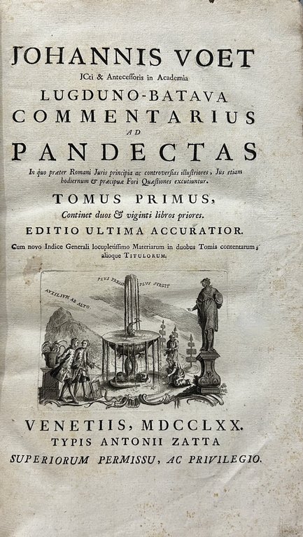 Commentarius ad Pandectas. In quo praeter Romani Juris principia ac controversias illustriores, Jus etiam hodiernum et praecipuae Fori Quaestiones excutiuntur. Editio ultima accuratior