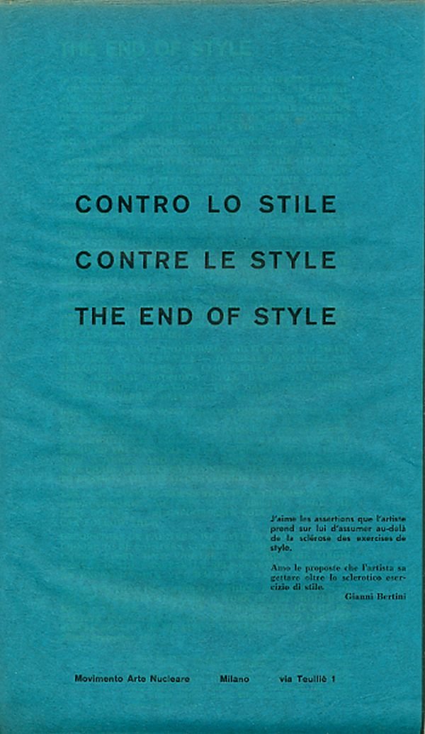 Contro lo stile. Contre le style. The end of style | Libri antichi e moderni | MOVIMENTO ARTE NUCLEARE