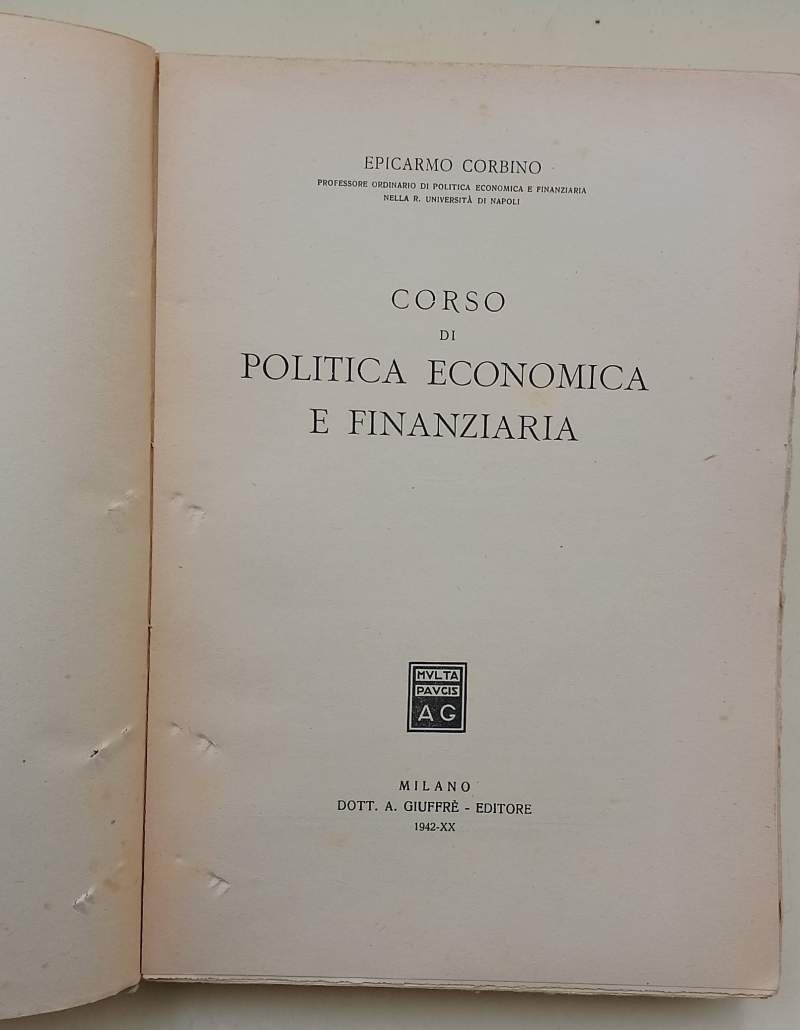 CORSO DI POLITICA ECONOMICA E FINANZIARIA( 1942) | Libri antichi e moderni | Corbino Epicarmo
