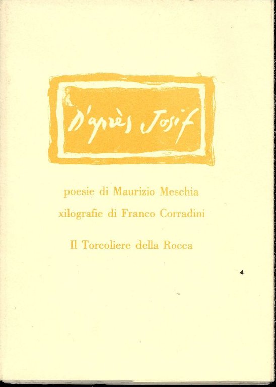 Poesie di Maurizio Meschia. 5 xilografie originali di Franco Corradini (cm 7,6x8,0) Edizione originale di 50 esemplari numerati e firmati dagli autori. Esemplare n. 10/50. 8vo. pp. 40 circa. . Molto buono (Very Good). Pagine chiuse (Uncut pages). Edizione originale di 50 es. numerati e firmati. .