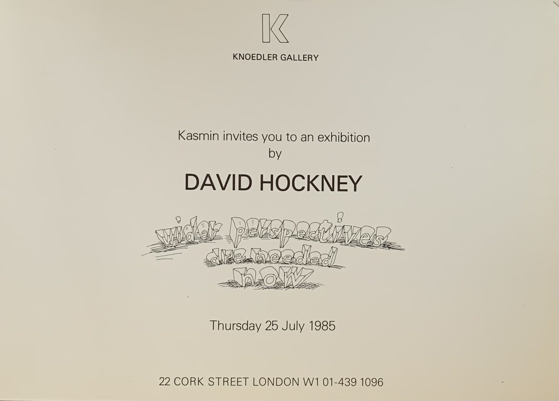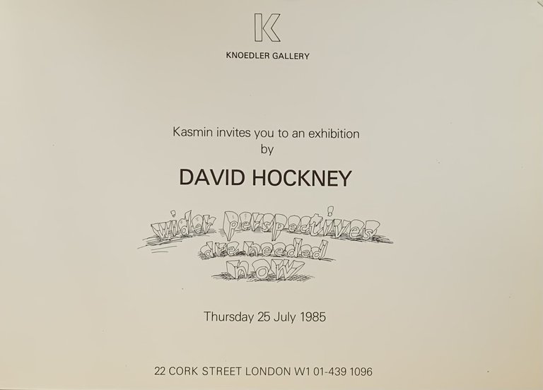 David Hockney. Wider perspectives are needed now. Knoedler Gallery 1985