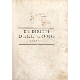 De' diritti dell'uomo. Libri VI. Ne' quali si dimostra, che la più sicura Custode de' medesimi nella Società Civile è la religione cristiana; E che però l'unico Progetto utile alle presenti circostanze è di far rifiorire essa Religione. Opera | Libri antichi e moderni | Spedalieri Nicola (1740-1795)