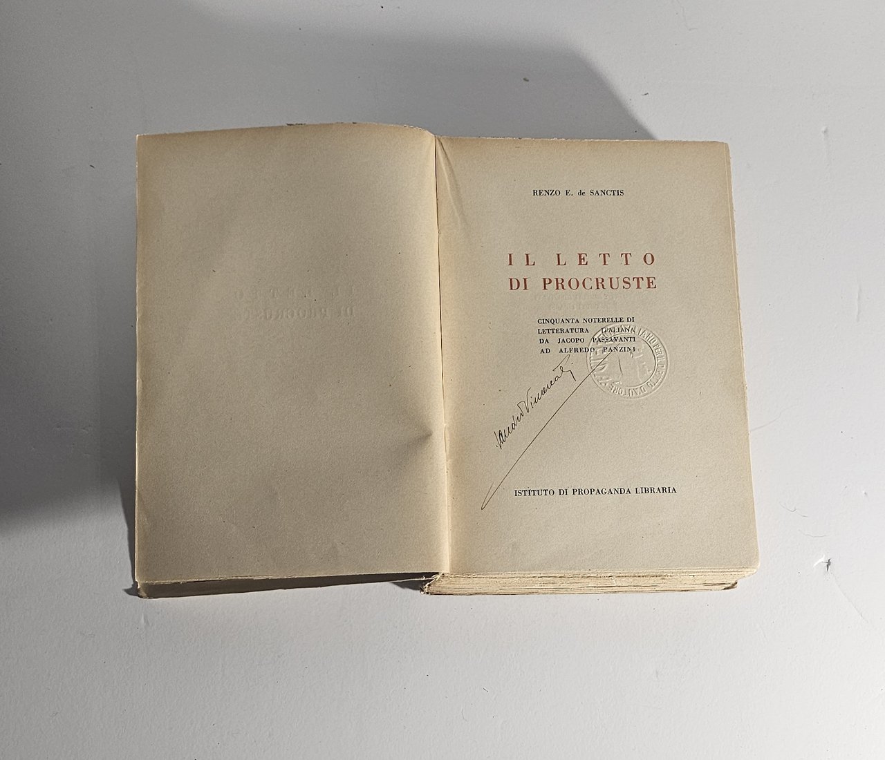 • Renzo E. De Sanctis Il letto di Procuste, edizione IPL Milano anni ’40. Raccolta di noterelle di letteratura italiana con segni del tempo, interessante per studio e collezione.