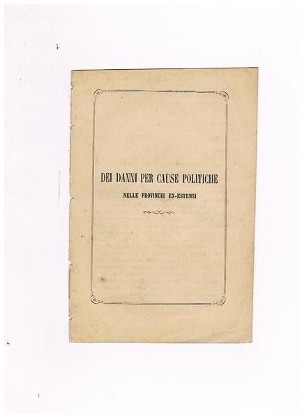 Dei danni per cause politiche nelle provincie ex-estensi. | Libri antichi e moderni | Padoa D.
