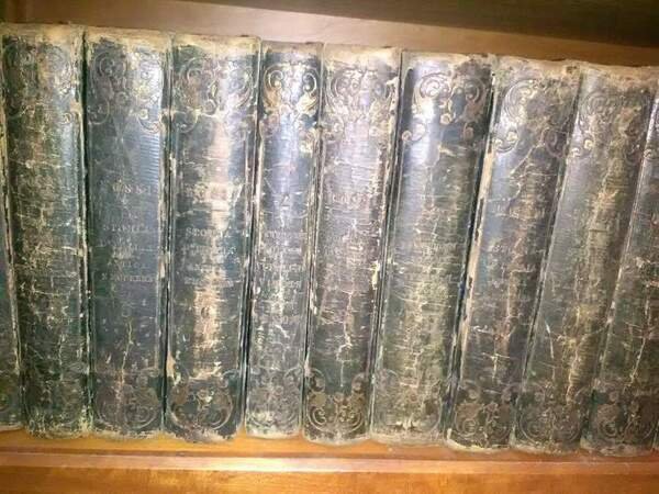 19 voll. in 8, m. pelle, piatti marmorizzati, completi delle tavv. incise e ripiegate. Dorsi abrasi con titoli cancellati, mancanze alla carta marmorizzata di alcuni voll., leg. ben salda ed interno fresco. Discrete condizioni.Luogo di pubblicazione Milano Editore G.P. GieglerAnno pubblicazione 1819Materia/Argomento StoriaCondizione Titolo Usato - Buono ***Due to bureaucratic reasons, books dated over 70 years old cannot be immediately exported, please contact us before placing the order.***