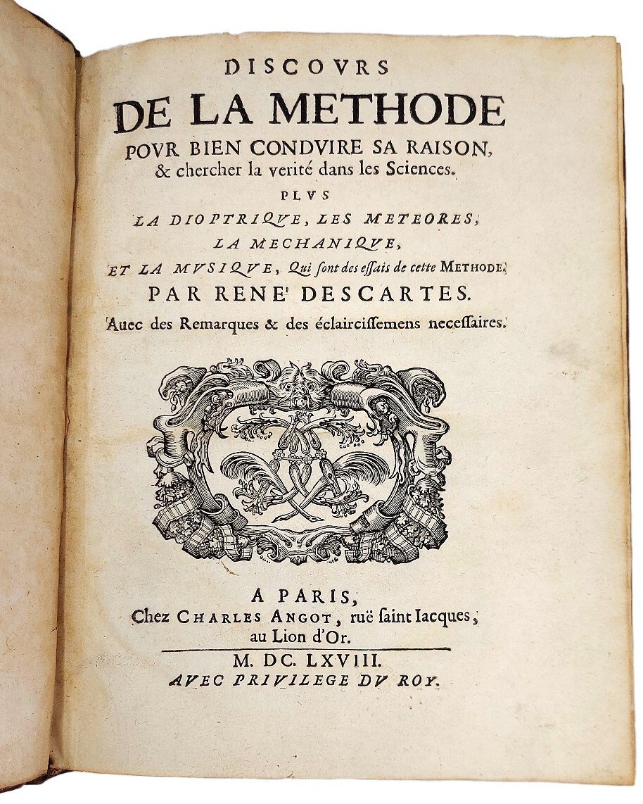 Discours de la Méthode pour bien conduir sa Raison et chercher la verité dans les Sciences. Plus la Dioptrique, les Meteores, la Mechanique, et la Musique, qui sont des essais de cette Methode. | Libri antichi e moderni | DESCARTES, René.
