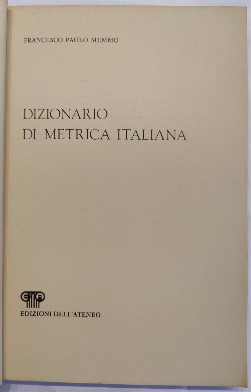 Dizionario di metrica italiana | Libri antichi e moderni | Memmo, Francesco Paolo