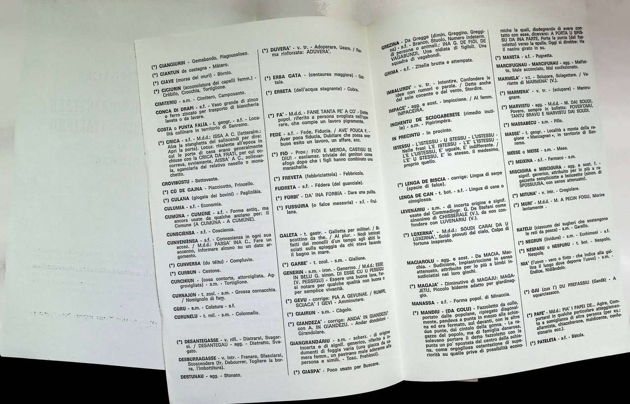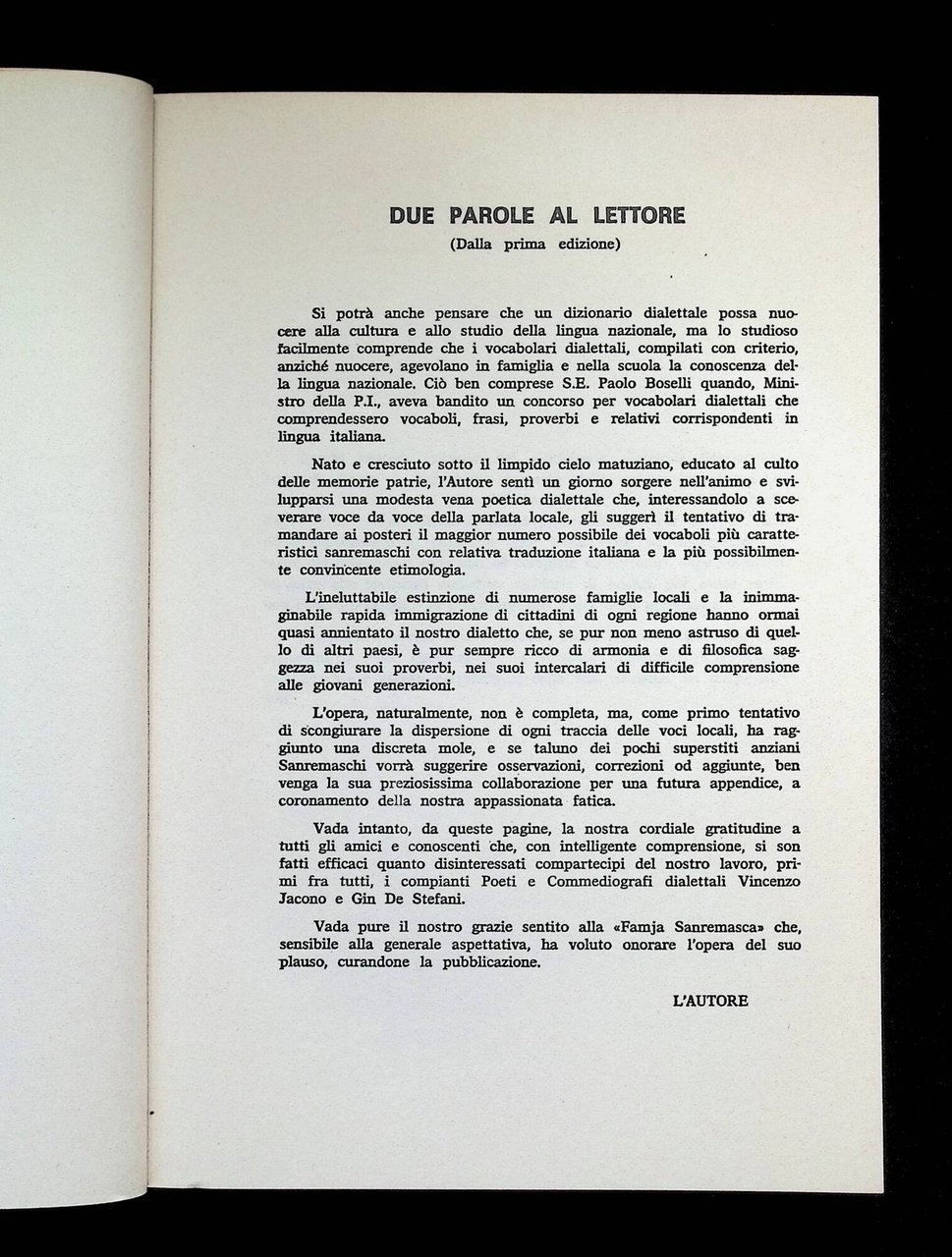 Circa 9000 vocaboli del dialetto sanremese tradotti in lingua italiana e corredati di proverbi e modi di dire con accenni ad usi e tradizioni locali