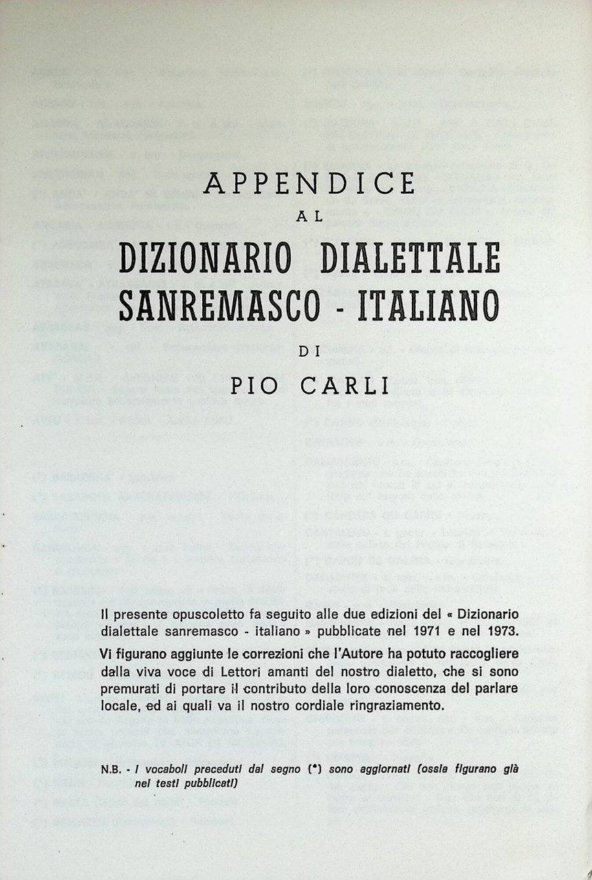 Dizionario Dialettale Sanremasco-Italiano | Libri antichi e moderni | Carli, Pio