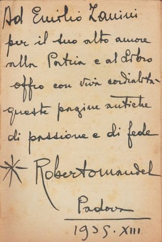 In-8°, legatura in brossura editoriale, pp. 182-(8), con un ritratto e una lunga dedica autografa firmata dell'autore alla carta bianca. Tracce d'uso.