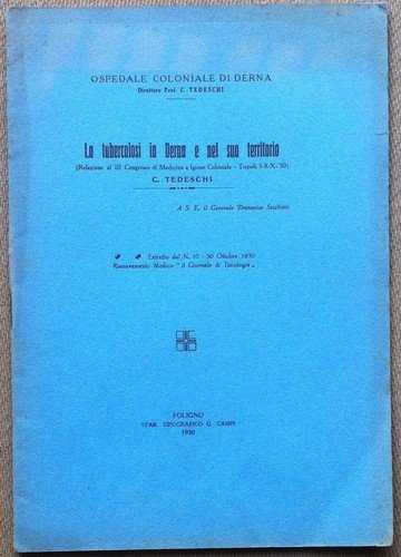 Dott. Carlo Tedeschi - La tubercolosi in Derna - Ospedale Coloniale Derna - 1930