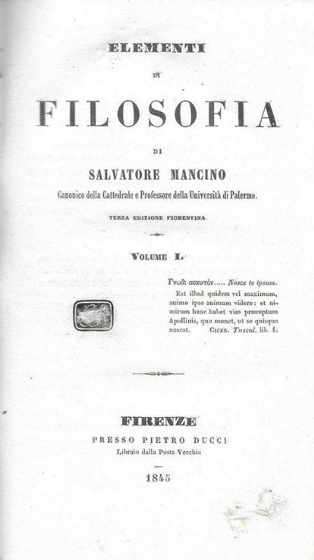 Elementi di filosofia. | Libri antichi e moderni | Mancino Salvatore.