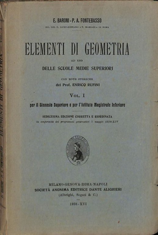 Elementi di geometria ad uso delle scuole medie superiori. Vol. I | Libri antichi e moderni | Baroni E., Fontebasso P. A.