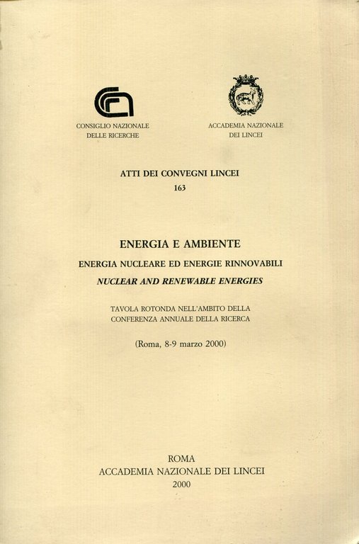 Energia e ambiente : energia nucleare ed energie rinnovabili = nuclear and renewable energies : tavola rotonda nell'ambito della conferenza annuale della ricerca : Roma, 8-9 marzo 200 | Libri antichi e moderni | Consiglio nazionale delle ricerche; Accademia nazionale dei Li, ,Consiglio nazionale delle ricerche; Accademia nazionale dei L