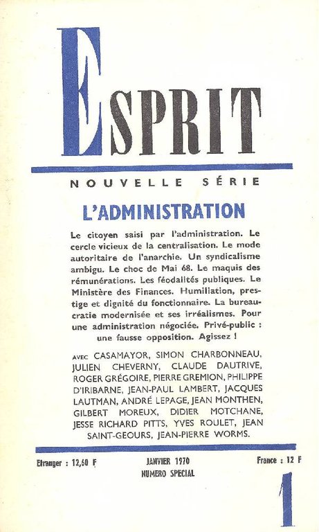 Esprit. Janvier 1970. Numero Special. L'administration | Libri antichi e moderni | ESPRIT Directeur Jean Marie Domenach,