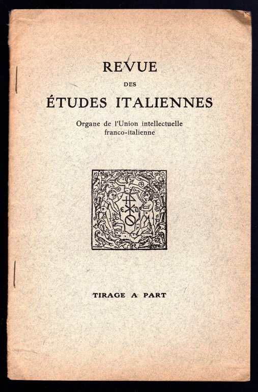 Opuscolo vintage in-8° con 27 pagg. Saggi. Testo in lingua francese. Revue des etudes italiennes. Organe de l'Union intellectuelle franco-italienne.