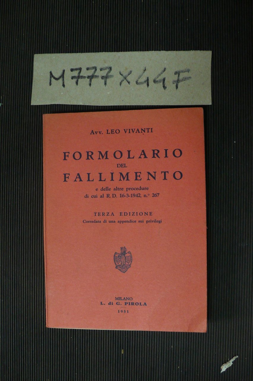 Formolario del fallimento e delle altre procedure (di cui al R. D. 16/3/1942, n° 267) | Libri antichi e moderni | Vivanti Leo