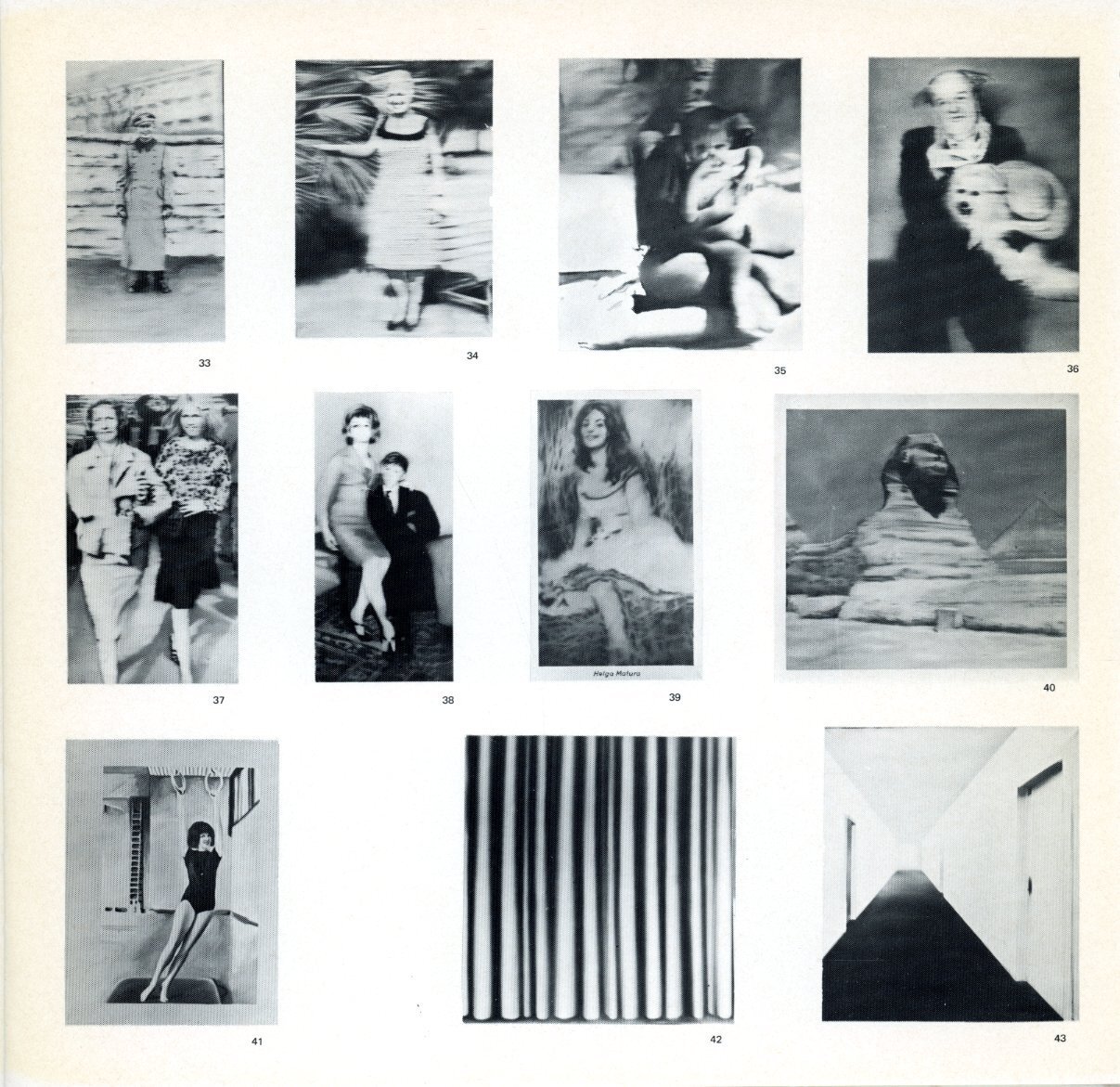 Catalogo pubblicato in occasione della mostra di Gerhard Richter presso il Zentrum für Aktuelle Kunst – Gegenverkehr, Aachen, 27 marzo - 22 aprole 1969. Testo di Klaus Honnef. Con la riproduzione di 122 opere dell'Artista in 16 tavole . Cm 20x21. pp. 32. . Ottimo (Fine). . Prima edizione (First Edition). . Questo catalogo è di fatto il Catalogo ragionato dei primi lavori di Richter dagli inzi degli Anni Sessanta. Le 122 opere sono riprodotte in bianco e nero e accompagnate da una lista che riporta titolo, anno, dimensioni e provenieza delle stesse