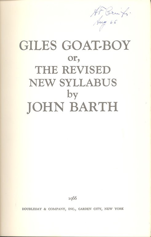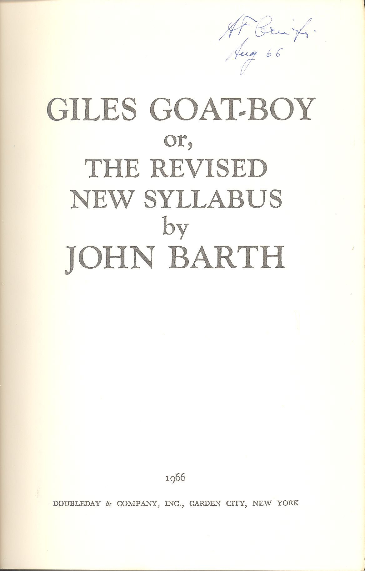 Giles goat-boy or, The Revised New Syllabus | Libri antichi e moderni | BARTH John (Cambridge 1930),