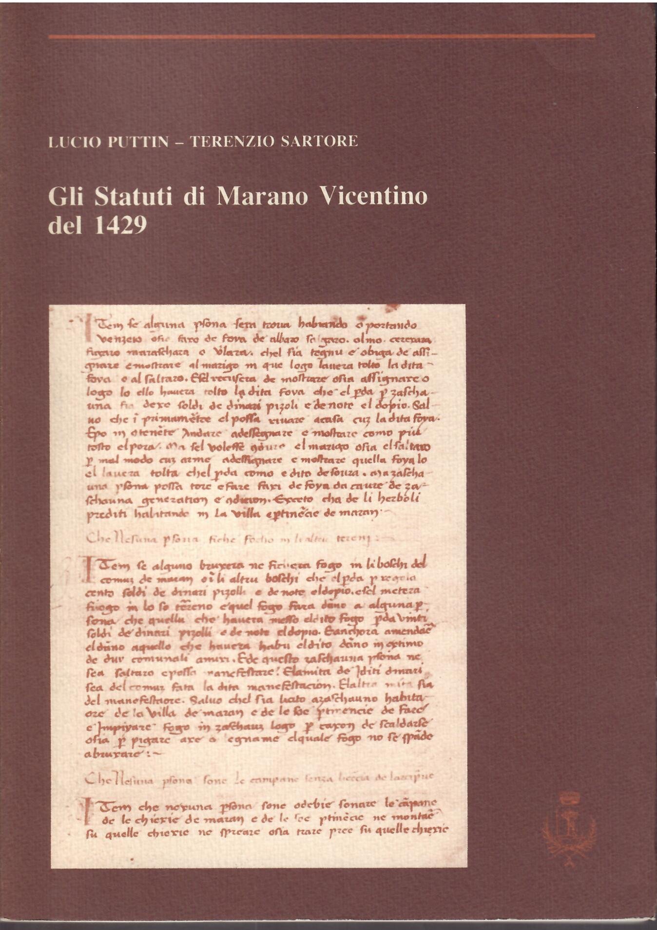 GLI STATUTI DI MARANO VICENTINO DEL 1429 | Libri antichi e moderni | Lucio Puttin - Terenzio Sartore