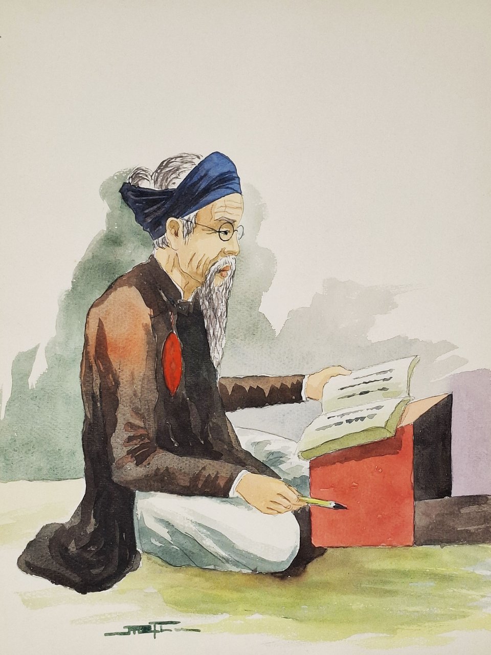 gouache su carta (vecchio scribano orientale) | Libri antichi e moderni | Nguyen Mai Thu