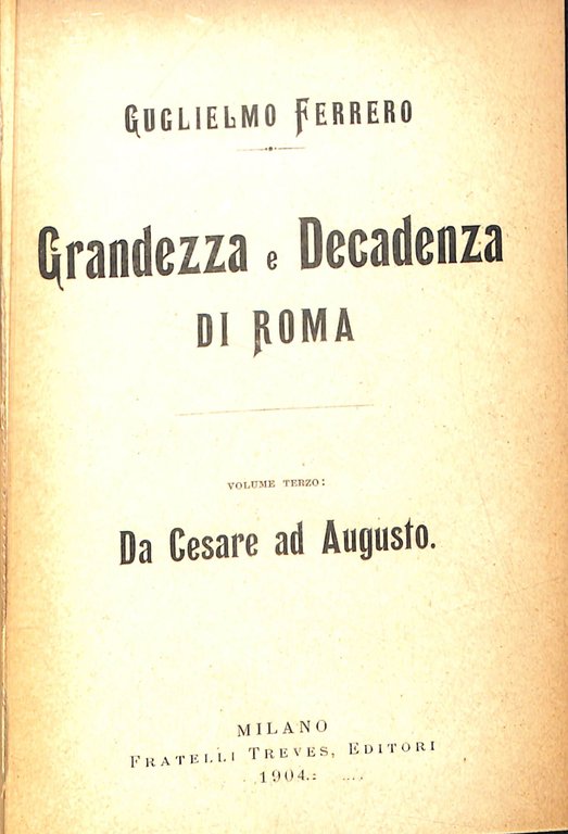 Grandezza e decadenza di Roma. Da Cesare ad Augusto, volume terzo | Libri antichi e moderni | Ferrero, Guglielmo