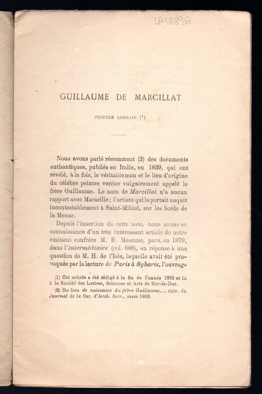 Opuscolo vintage in-8° con 11 pagg, Nancy. Saggi. Testo in lingua francese. copertina con segni di matita e strappetti.