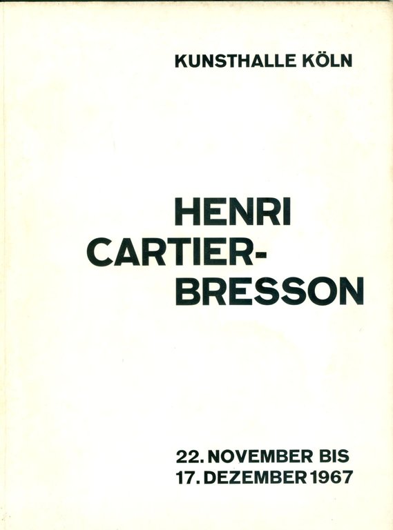 Catalogo di mostra, Kunsthalle Koln, 22 novembre - 17 dicembre 1967. Un testo di Cartier-Bresson. Scritti di Claude Roy e Helmut May. Numerose fotografie in bianco e nero. Edizione in tedesco . 4to. pp. 40. . Molto buono (Very Good). . . .