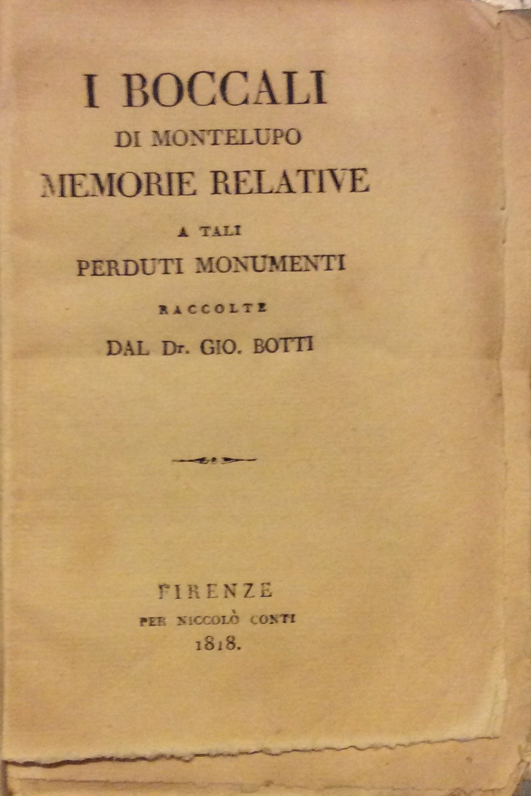 I BOCCALI DI MONTELUPO. - Memorie relative a tali perduti monumenti. | Libri antichi e moderni | BOTTI Giovanni