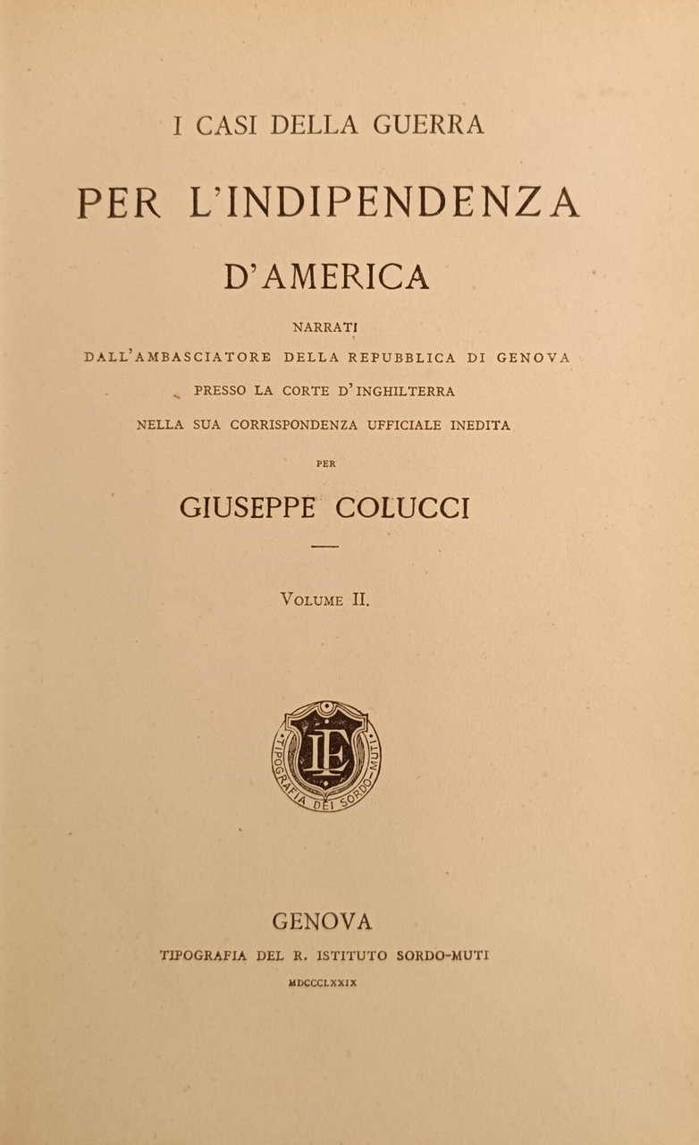 I CASI DELLA GUERRA PER L'INDIPENDENZA D'AMERICA | Libri antichi e moderni | COLUCCI GIUSEPPE, ,COLUCCI GIUSEPPE