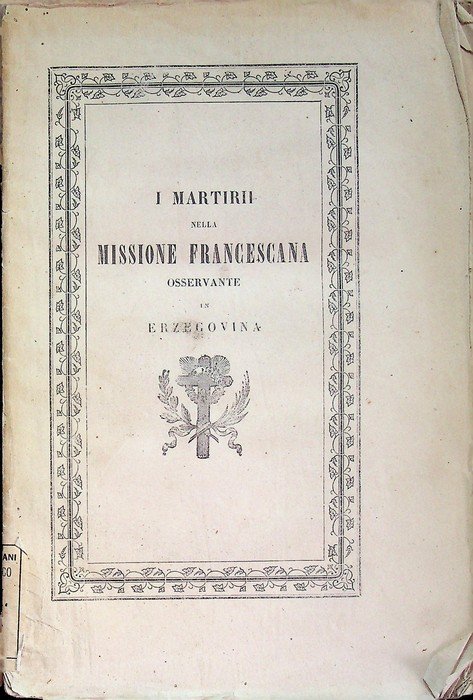I martirii nella missione francescana osservante in Erzegovina: narrazione storica diretta ai pii benefattori dal padre Pietro Bakula lettore generale di s. teologia. | Libri antichi e moderni | Bakula, Petar.