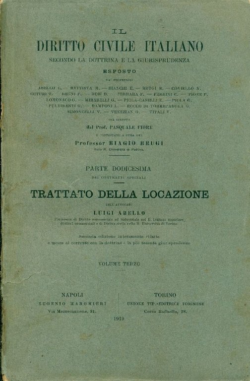 Il diritto civile italiano secondo la Dottrina e la Giurisprudenza, parte dodicesima: dei contratti speciali. | Libri antichi e moderni | ABELLO Luigi,
