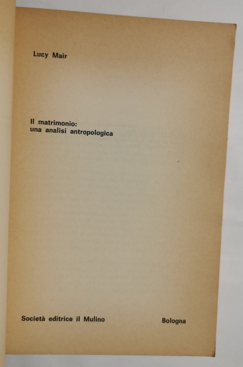 Il matrimonio: un'analisi antropologica | Libri antichi e moderni | Mair, Lucy