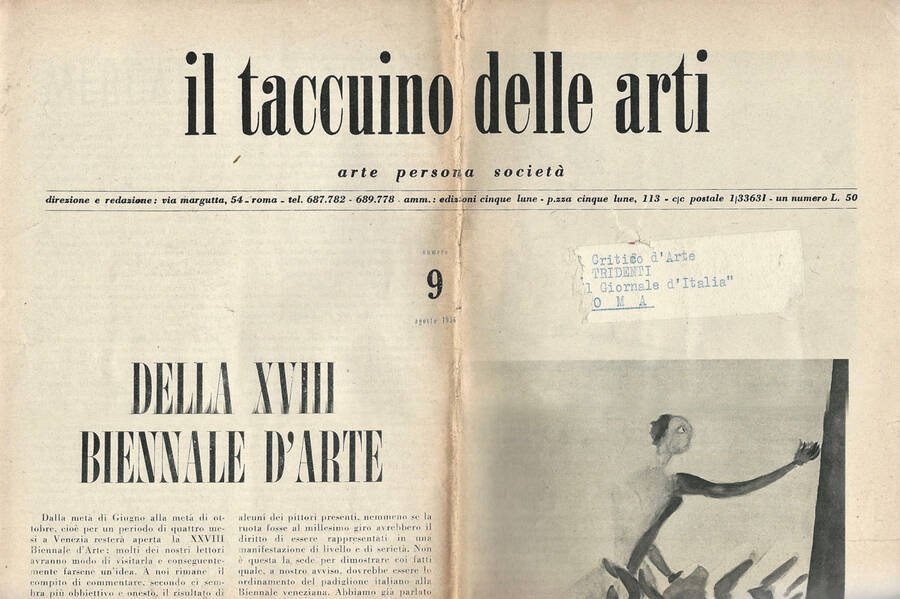 Copia N. 9 - agosto 1956, della rivista - il taccuino delle arti - mensile di arti figurative, e critica letteraria, redattore L. Budigna e M. Innocenti, responsabile G. Ponti, con usure lungo la piegatura, gialliture e segni rossi sulla prima pagina, ottimo, vista la data, l'aspetto generale. Numero Pagine 7