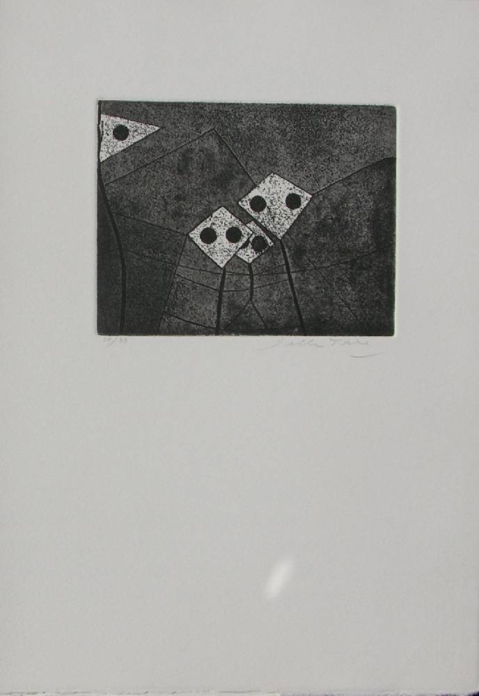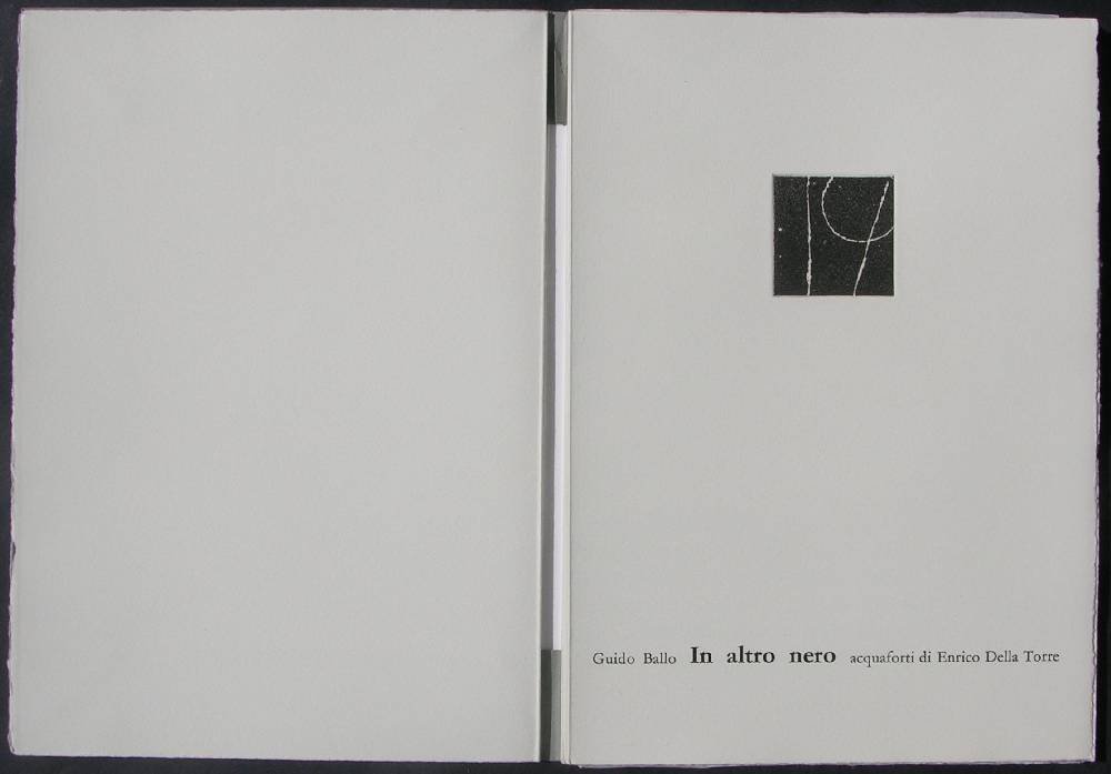 5 acqueforti acquetinte firmate di Enrico Della Torre (cm 16x9,5 - 12,5x16 - 17,5x12 - 14,5x12,5 - 24,5x19). Una poesia di Ballo Carta Hahnemuhle. Stampa tipografica di Ruggero Olivieri. Esemplare 68. 4to (cm 38x27). pp. 24. . Ottimo (Fine). . Edizione originale di 99 +X es. numerati. Libri d'artista italiani del Novecento [Jentsch, 1993] Jentsch Ralph, I libri d'artista italiani del Novecento. Torino, Allemandi.