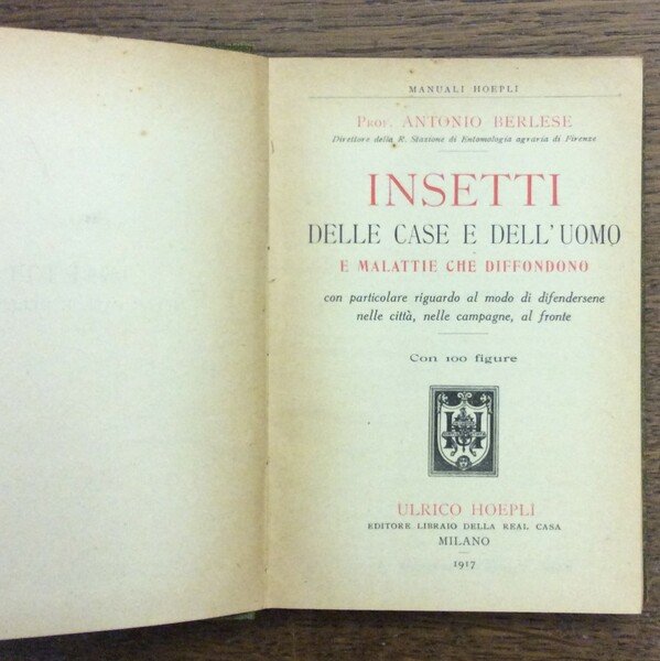 INSETTI DELLE CASE E DELL'UOMO E MALATTIE CHE DIFFONDONO. - Con particolare riguardo al modo di difendersene nelle città, nelle campagne, al fronte. | Libri antichi e moderni | BERLESE Antonio