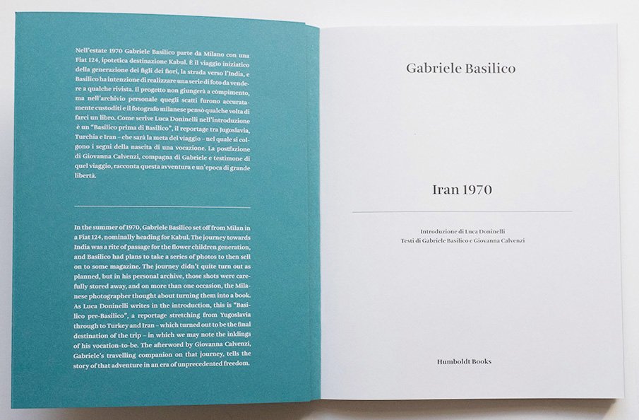 Introduzione di Luca Doninelli, testi di Gabriele Basilico e Giovanna Calvenzi, in italiano e inglese. Fotografie in bianco e nero di Gabriele Basilico. Libretto di XII pagine spillato all'aletta della copertina posteriore . 8vo. pp. 80 + XII. . Ottimo (Fine). . Prima edizione (First Edition). . "Nell'estate 1970 Gabriele Basilico parte da Milano con una Fiat 124, ipotetica destinazione Kabul. È il viagio iniziatico della generazione dei figli dei fiori, la strada verso l'India, e Basilico ha intenzione di realizzare una serie di foto da vendere a qualche rivista. Il progetto non giungerà a compimento ma nell'archivio personale quegli scatti furono accuratamente custoditi e il fotografo milanese pensò qualche volta di farci un libro. Come scrive Doninelli nell'introduzione è un "Basilico prima di Basilico", il reportage tra Jugoslavia, Turchia e Iran - che sarà la meta del viaggio - nel quale si colgono i segni della nascita di una vocazione."