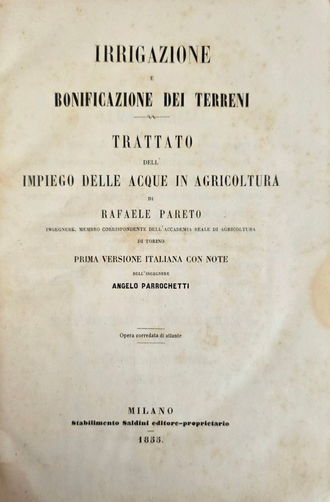 IRRIGAZIONE E BONIFICAZIONE DEI TERRENI. TRATTATO DELL' IMPIEGO DELLE ACQUE IN AGRICOLTURA | Libri antichi e moderni | PARETO RAFAELE, ,PARETO RAFAELE