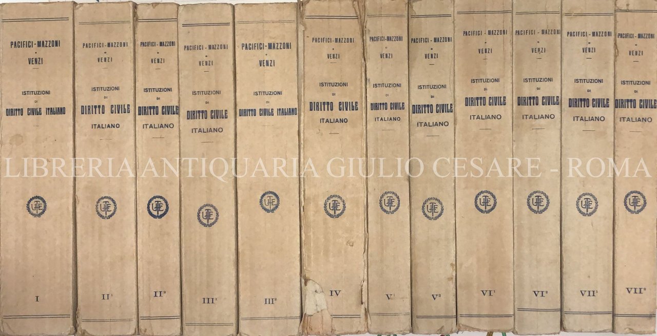 Istituzioni di diritto civile italiano. Parte generale: Vol. I - Del diritto in generale. Del diritto italiano. Delle leggi in generale interpretazione effetti (teoria della irretroattività delle leggi diritto internazionale privato). Abrogazione delle leggi. Del diritto civile italiano in particolare. Vol. II,1 - Nozione e distinzione dei diritti in generale. Subbietti dei diritti. Obbietti dei diritti. Acquisto, modificazione e perdita dei diritti. Vol. II,2 - Esercizio, difesa e garanzia dei diritti. Parte Speciale: Vol. III,1 - Nozione e distinzione dei diritti in generale. Del possesso, della proprietà, della comunione, dell'enfiteusi. Vol. III,2 - Delle servitù. Dei privilegi e delle ipoteche. Vol. IV - Delle obbligazioni in generale. | Libri antichi e moderni | Pacifici Mazzoni Emidio