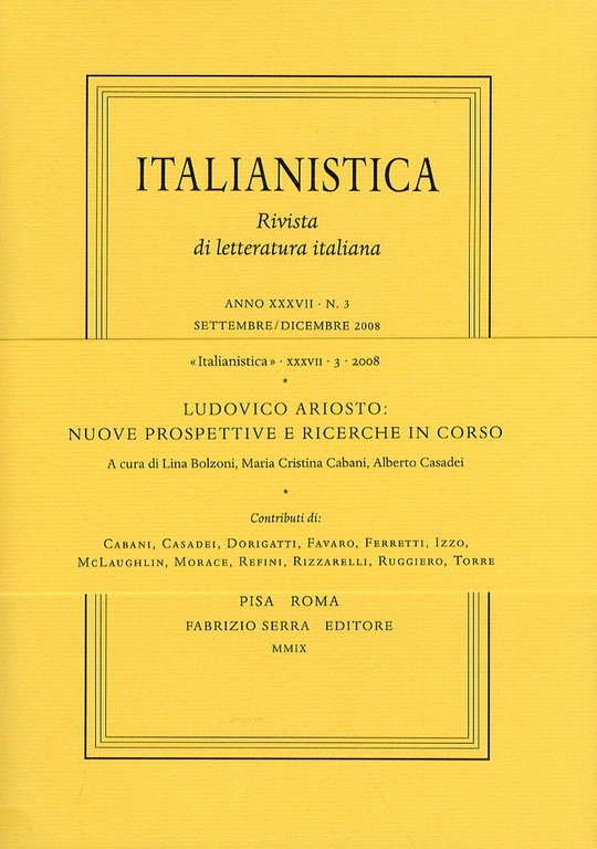 Italianistica. Rivista di letteratura italiana. 37. 3. 2008. Ludovico Ariosto: nuove prospettive e ricerche in corso, Pisa, Fabrizio Serra Editore, 2009