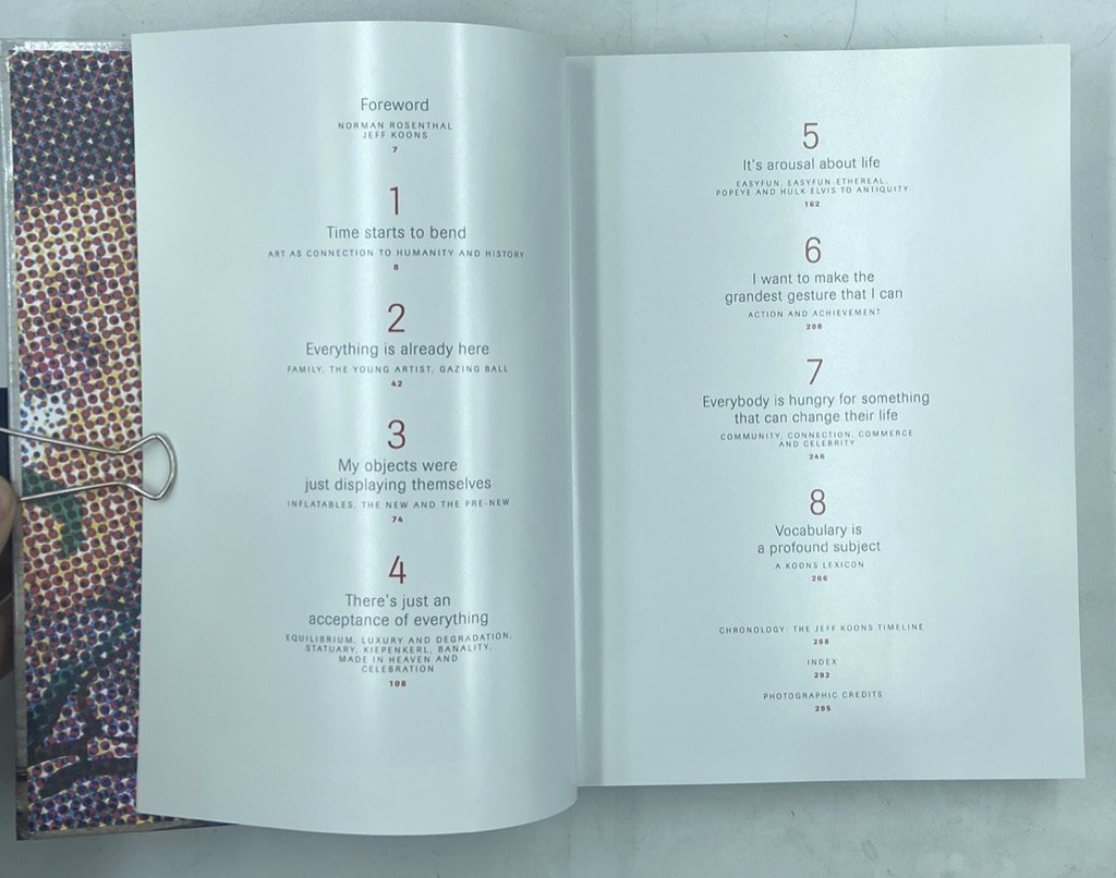 Cartonato editoriale illustrato, cm 24.5 x 17.5, pp 295 (1) illustrate a colori. In inglese. Buono stato. Il libro si compone di 8 conversazioni nelle quali Jeff Koons esplora vari aspetti della propria pratica artistica con il critico inglese Norman Rosenthal; con una cronologia dell’artista.